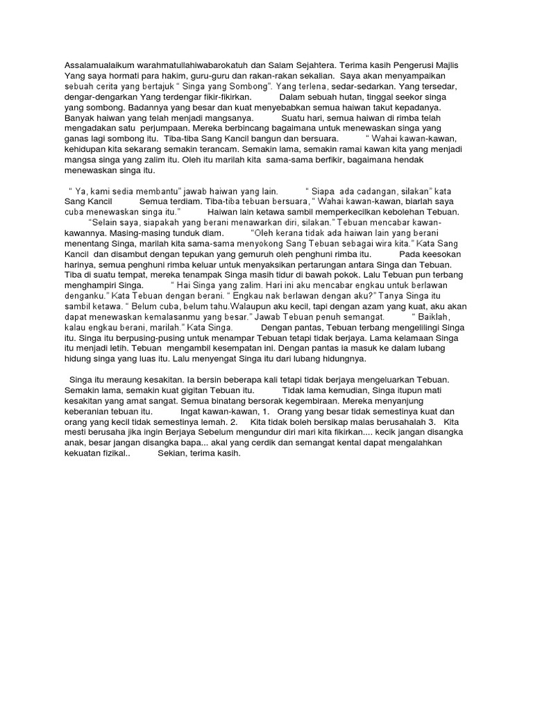 . Teks pertandingan bercerita tahap 1 tajuk cerita assalammualaikumwbt. PERTANDINGAN BERCERITA TAHAP 1 SK HUA HIN ENGLISH. Teks pertandingan bercerita tahap 1 tajuk cerita assalammualaikum wbt.