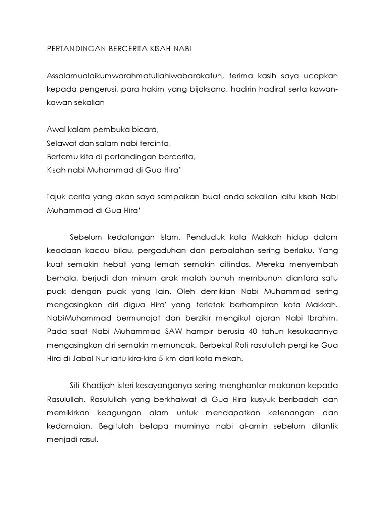 Pertandingan Bercerita Kisah Nabi Muhammad Di Gua Hira Pdf
