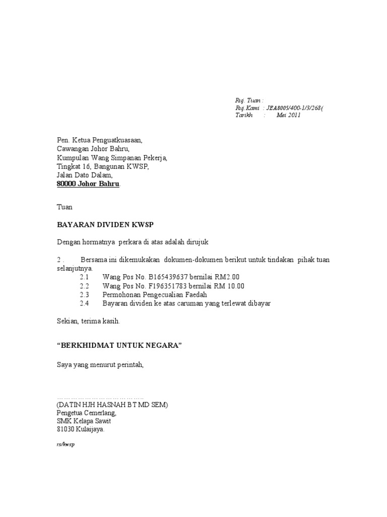 Contoh Surat Rasmi Kepada Kwsp Hanssqw